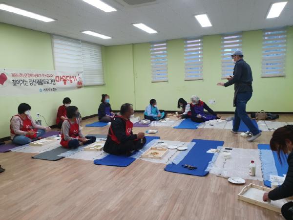 본 프로그램은 접근성이 먼 지역에 거주하여 거제시 정신건강복지센터 프로그램에 참여하기 어려운 분들을 위하여 면, 동 단위로 찾아가 재활 프로그램을 운영 본인이 직접 작품(원목 트레이)을 만들어 봄으로써 성취감 및 대인관계기술을 향상시키는 기회를 제공하기 위해 마련되었다.