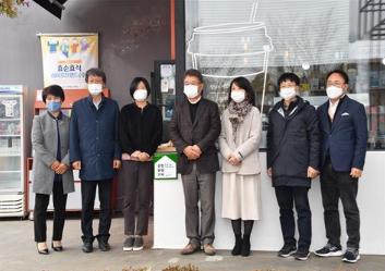 공정무역가게 1호점 표시판 게첨식에는 이남석 성남시 재정경제국장, 윤남옥 성남공정무역협의회장 등 7명이 참석했다.