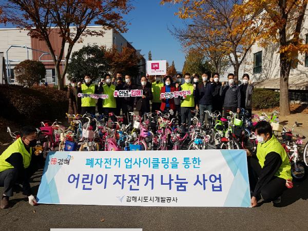 이번 나눔은 지난 5월부터 아파트 단지, 도로 등에 무단 방치된 자전거를 수거해 김해시도시개발공사 임직원, 김해재난대응봉사회 봉사자들이 협업하여 자전거 세척 및 부품교체, 수리작업 등을 통해 지속적으로 준비한 결과이다.