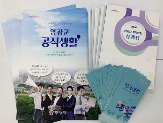 영광군은 공직사회에 적극행정 문화를 정착 및 확산하기 위해 적극행정 사례집, 포스터 등의 홍보물을 자체 제작했다.
