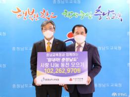 충남교육청은 저소득층가정 학생 돕기 일환으로 추진된 ‘2020 힘내라! 충청남도 사랑나눔 동전모으기’ 성금 1억여 원을 지난 9일 충남사회복지공동모금회(회장 성우종)에 기탁했다.