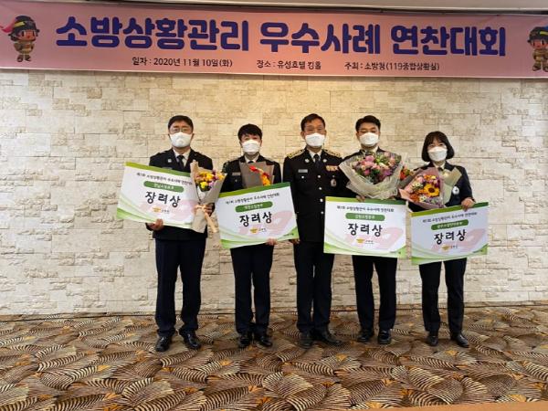 대전소방본부 119종합상황실이 10일 소방청이 주관하는 우수 상황관리 연찬대회에서‘상황근무자의 관심으로 아동학대범을 잡다’라는 제목의 자료로 장려상을 수상했다.