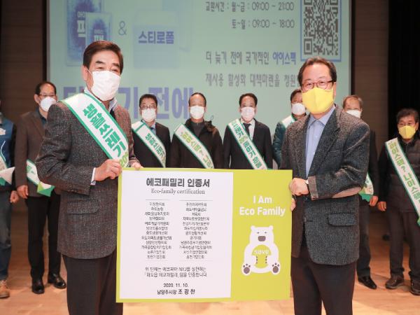조광한 남양주시장은 10일 에코패밀리의 적극적 활동을 응원하기 위한 small openning 행사에 참여하여 에코패밀리에 인증서를 수여했다.