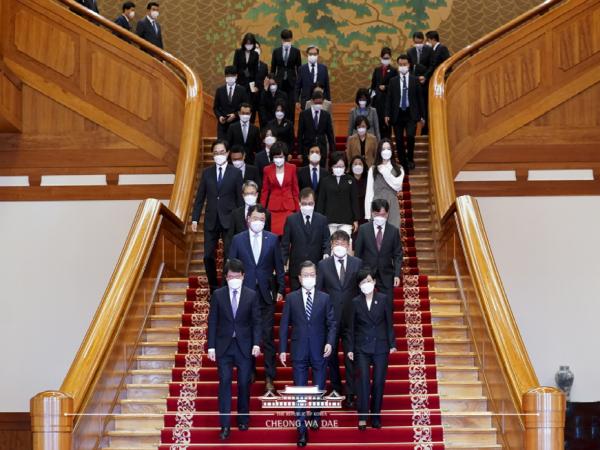 문대통령은 신임장 수여 후 환담에서 코로나 상황에서 대사들을 보내는 마음이 가볍지 않고 걱정이 앞선다고 하면서, 코로나 상황이 언제까지 지속될지 알 수 없지만 현지 교민의 안전에 각별히 챙겨줄 것을 당부하였다. 그리고 전 세계의 모범이 되고 있는 K-방역의 전도사가 되어 자긍심을 가지고 해당국의 방역에 적극 협력하며, 코로나 위기 이후를 준비할 디지털 뉴딜, 그린 뉴딜의 발전 아이디어도 모색해 달라고 말했다.
