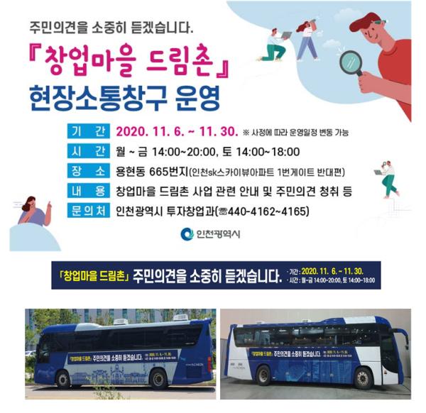 인천광역시(시장 박남춘)는‘창업마을 드림촌 조성 사업’에 대해 지속적인 안내와 및 주민 의견 수렴을 위해 현장소통창구를 운영한다고 밝혔다.