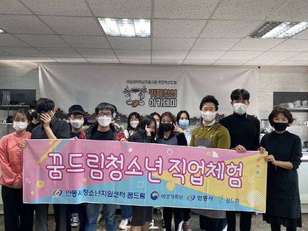 안동시학교밖청소년지원센터는 가톨릭상지대학교 혁신지원사업단과 함께 11월 4일(수) 관내 학교 밖 청소년 10여명을 대상으로 ‘커피 바리스타 진로?직업체험’을 실시했다.