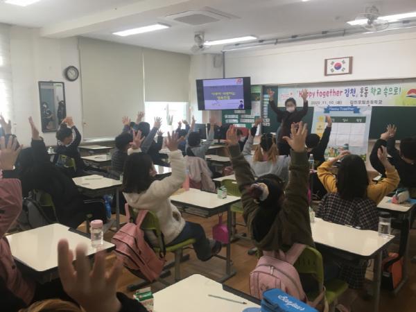 김천시는 지난 11월 10일 김천모암초등학교(교장 하헌택)에서「Happy together 김천」운동 친절·질서·청결교육을 실시했다.