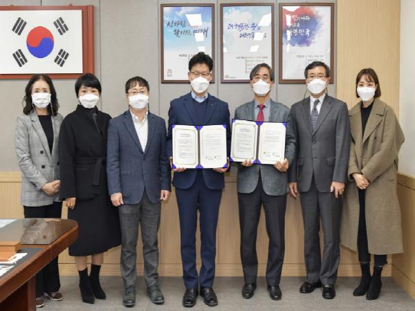 김정섭 시장과 최병규 (사)한마음교육봉사단장은 다문화가정 초등학교 자녀의 가정학습 담당 및 중˙고등학생의 자녀교육을 챙길 수 있는 엄마를 양성하고, 자녀의 성공적인 사회진출을 돕기 위해 다문화 엄마학교를 설립하기로 약속하고 협약서에 서명했다.