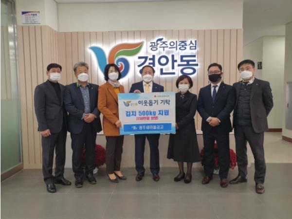 광주시는 MG광주새마을금고에서 지난 10일 경안동 행정복지센터를 방문, 어려운 이웃에게 전달해 달라며 김치 500㎏(150만원 상당)를 기탁했다고 밝혔다.