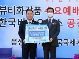 ㈜한국바이오헬스는 이날 준공식에서 지역인재 양성을 위한 장학금 1천만원과 코로나19 예방을 위한 KF94 마스크 5만장(4천만원 상당)을 (재)음성장학회와 음성군청에 각각 기탁해 지역사회에 대한 기여를 아끼지 않았다.