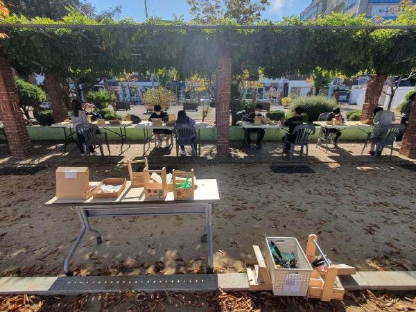 진주시에서 코로나19 감염병 예방 및 대형 공사로 인한 월아산 우드랜드 임시휴관 장기화에 따라 목공수요 충족을 위해 운영 중인 ‘찾아가는 목공체험교실’이 학생들과 교사들에게 호응을 얻고 있다.