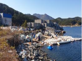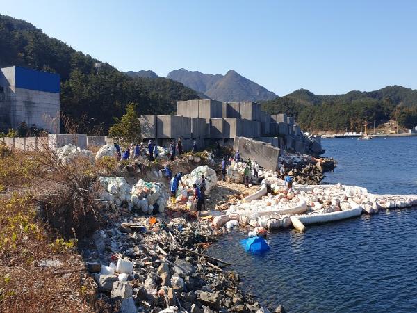 통영시는 11월 10일 광도면 안정리 주변 해안변에 방치되어 있던 폐스티로폼 부표 및 각종 해양쓰레기를 수거하기 위한 민관합동 정화활동을 실시했다.