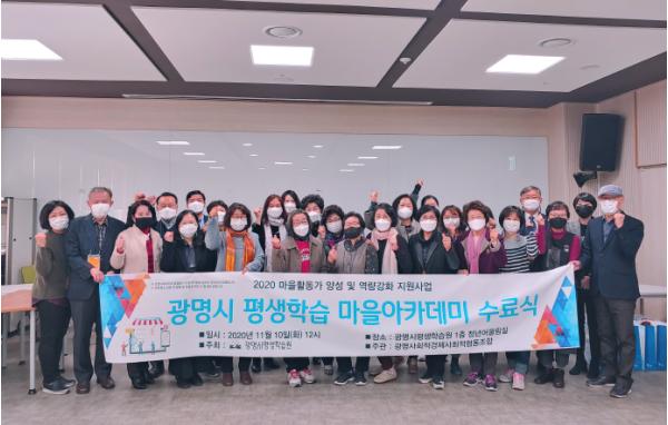 광명시는 10일 평생학습원에서 2020 마을활동가 양성 및 역량강화 지원사업 ‘평생학습 마을아카데미’ 과정을 이수한 마을활동가들에게 수료증을 수여했다.