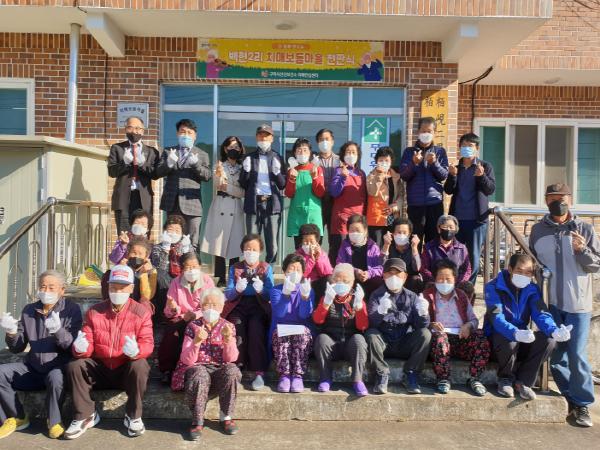 구미시 선산보건소(소장 최현주)는 2020년 11월 10일 산동면 백현2리 마을회관에서 시의원, 산동면, 경운대학교 관계자, 마을주민 등 30여명이 참석한 가운데「치매보듬마을」현판식을 개최하였다.