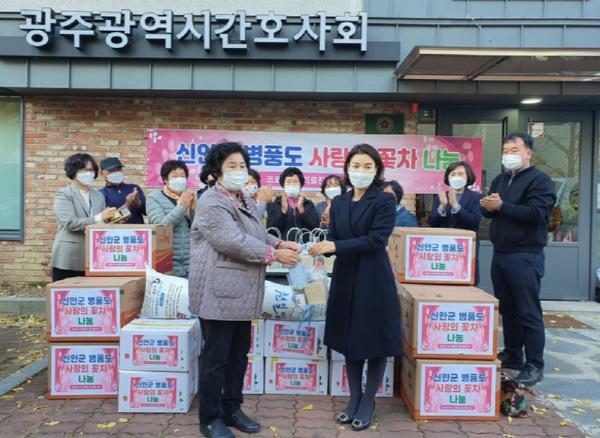 신안군의 작은섬 증도면 병풍도 주민들이 지난 10일 코로나19 극복에 헌신하는 의료진의 지친 몸과 마음을 위로하기 위한 맨드라미 꽃차 100세트를 광주광역시간호사회에 전달했다고 밝혔다.
