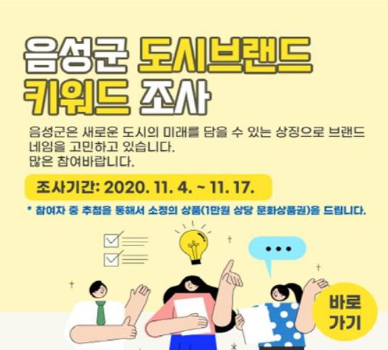 음성군이 도시브랜드 슬로건 개발에 활용하기 위해, 온·오프라인을 통해 도시이미지 연상 키워드 조사를 진행하고 있다고 11일 밝혔다.