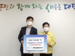 기탁식에 참석한 이신재 대표는 “대덕구에 자리 잡은 기업으로서 대덕구 취약계층이 코로나로부터 안전하길 바라는 마음으로 기부하게 됐다”며 “앞으로도 기업의 이익을 지역사회에 환원하도록 노력하겠다”고 말했다.