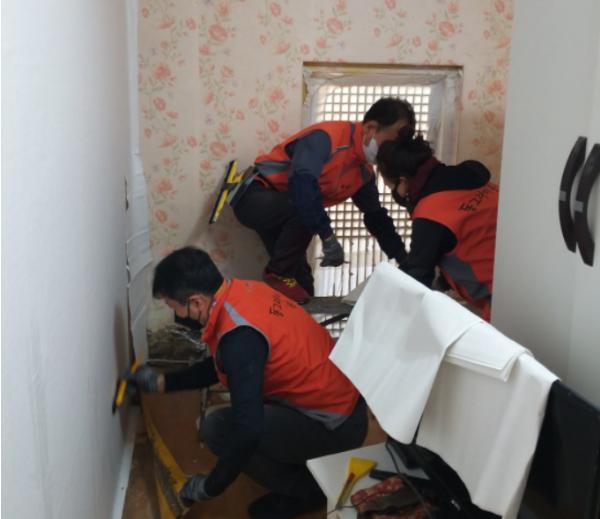 이번 봉사는 오래된 벽지에 곰팡이와 찌든 때가 얼룩져 주거세대의 건강이 우려돼 실시하게 됐다.