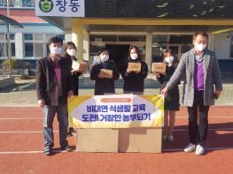 ‘도전! 거창한 농부되기 ’프로그램은 사전신청을 통해 희망한 관내 유치원 및 초등학교 학생 455명을 대상으로 진행하는 가정연계 비대면 식생활 교육으로, 텃밭 키트를 활용한 농산물 재배 체험과 영농일지 작성, 재배작물을 활용한 요리 실습 등이다.