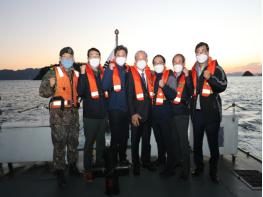 이어, 통영해경의 도움을 받아 해경정에 탑승하여 고성군 해상경계구역인 맥전포, 발전소, 와도를 거쳐 인근 통영시 남해군 경계를 시찰하여 해안 방위와 경비의 흔들림 없는 태세 유지를 직접 확인했다.