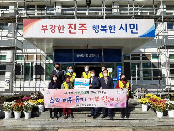 지난 10일 상대동 통장협의회(회장 김둘이)가 올해 17번째로 상대동 기부릴레이에 참여했다. 이 날 통장협의회는 2020년 사랑의 김장나눔 행사에 쓰일 재료 마련에 써 달라며 성금 70만원을 봉사단체협의회에 기탁하였으며, 담근 김장은 어려운 이웃 400여 세대에 전달될 예정이다.