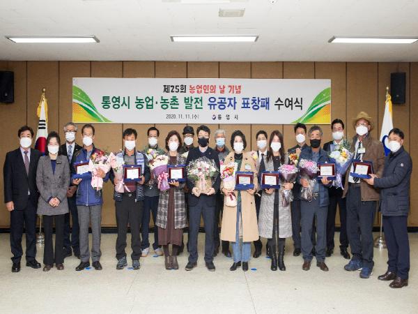 통영시는 11월 11일 제25회 농업인의 날을 기념하여 농업·농촌 발전에 기여한 유공자 12명에 대한 표창패 수여식을 개최했다.