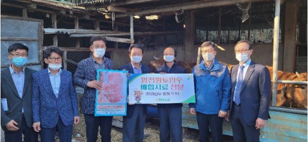 이에 합천축산업협동조합은 김도호 농가에 축하를 전하며, 30만원 상당의 합천축협 배합사료와 합천군 역대 최고경매가를 기록한 미경산우의 등심사진을 액자로 만들어 전달했다. 김용욱 합천축산업협동조합장은 “합천축협황토한우배합사료가 앞으로 농가 소득증대에 큰 도움이 될 수 있도록 사료개발 연구에 최선을 다 하겠다”고 전했다.
