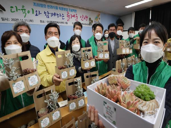 대전 동구 산내동 행정복지센터(동장 성영제)는 11일 산내동지역사회보장협의체(위원장 이인수)에서 코로나19로 지친 독거노인 등 소외계층 250가구를 방문해 다육이화분을 전달했다고 밝혔다.