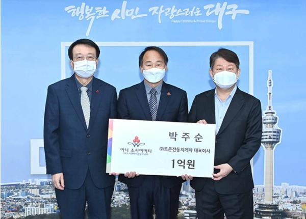 박주순 ㈜조은전동지게차 대표는 “유난히 힘들고 어려운 시기에 지역사회를 위해 함께하는 문화에 동참할 수 있게 되어 뜻깊게 생각한다”며 “앞으로도 시민이 행복한 도시, 컬러풀 대구의 완성에 작은 힘이나마 보태고 싶다”고 소망을 전했다.