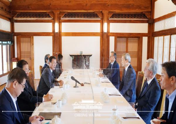 문재인 대통령은 오늘 12시부터 14시 10분까지 청와대 상춘재에서 외교안보 분야 원로 및 특보들과의 오찬 간담회를 가졌다.