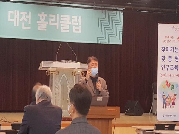 대전 서구는 지난 11일 아침 대전 기독교지도자 모임인 대전홀리클럽(회장 권석근 장로)에서 목사, 장로, 병원장, 교수들을 대상으로 ‘포스트 코로나 시대 인구구조 변화와 정책 방향’을 주제로 인구교육을 실시했다.