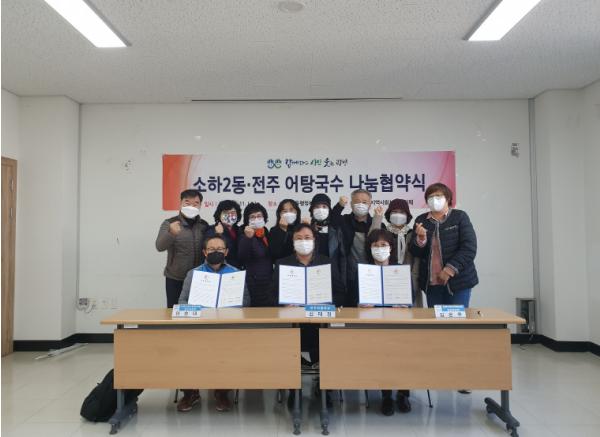 광명시 소하2동 행정복지센터와 지역사회보장협의체는 11일 광명시 밤일안로 41-5(하안동) 소재 ‘전주 어탕국수’와 나눔 협약을 체결 했다.