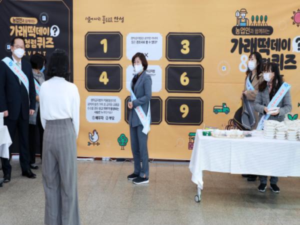 안성시가 지난 11일 시청에서 「농업인과 함께하는 ‘가래떡 데이’ & 청렴퀴즈 이벤트」를 실시했다고 밝혔다.