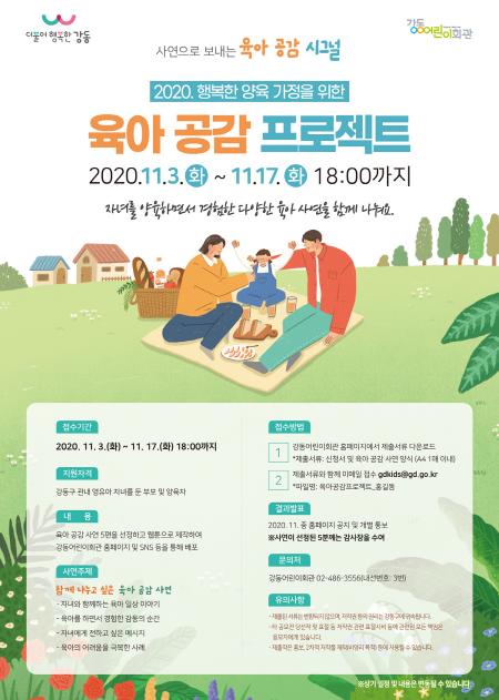 강동구가 지역 사회 내에 양육 친화적인 사회 공감대 형성을 지원하고자 부모 및 양육자들의 육아 사연을 공모하여 웹툰으로 제작하는 함께 나누는 “육아 공감 프로젝트”를 진행한다.