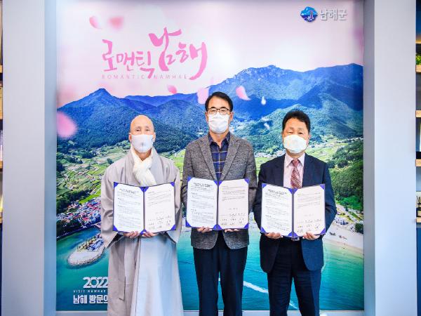 이날 협약식에는 남해군기독교연합회장 김병찬 목사, 남해군사암연합회장 성각 스님 등 남해군 내 기독교?불교 지도자 5명이 참석했다.