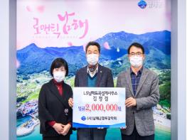 김대표는 “향토장학금 기탁을 통해 사업수익을 지역사회에 환원함과 동시에 지역 후학의 학업 향상에 도움을 주고 싶다”고 말하며, 앞으로도 지역사회를 위해서 좋은 일을 이어나가고 싶다”고 전했다.