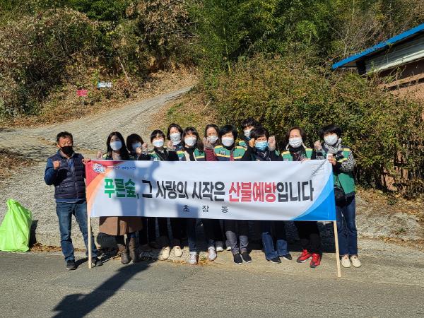 진주시 초장동 여성자율민방위기동대(대장 정정애)는 지난 11일 관내 장대산 등산로 일대에서 산불예방 캠페인을 전개하고 산림정화활동을 실시했다.