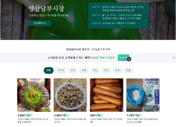 우선 양산남부시장 청년몰 6개 상점을 포함해 33개 상점의 450여개 품목을 온라인 장보기로 집에서 즐길 수 있다.
