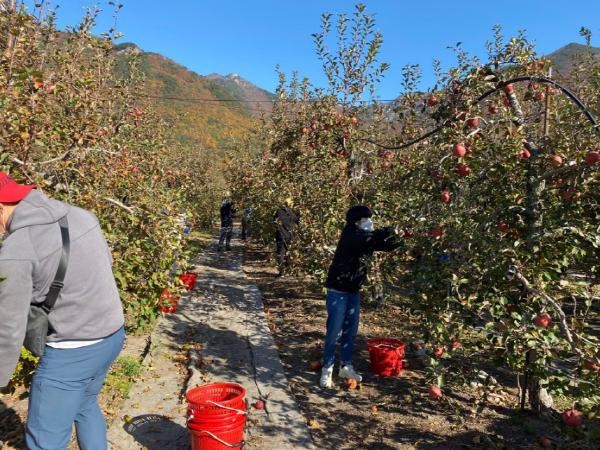 이날 도움을 받은 농가에서는 “코로나19 여파로 사과 수확 일손을 구하지 못해 어려움이 많았는데 이렇게 도움을 줘 다행이다”며 감사의 마음을 전했다.