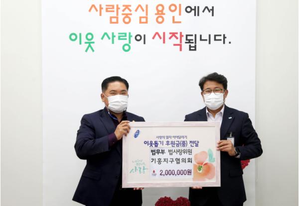 용인시는 12일 법무부 법사랑위원 기흥지구협의회가 관내 저소득층이나 사회복지시설을 지원하는 데 써 달라며 성금 200만원을 기탁했다고 밝혔다.