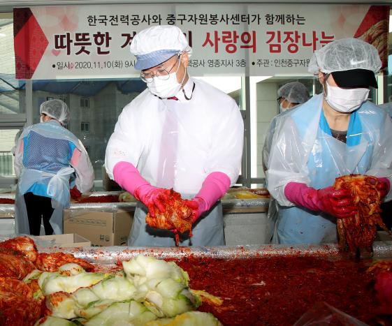 한국전력공사 영종지사 이동주 지사장은“김장나눔 활동에 자원봉사자와 함께 참여하게 되어 더욱 뜻깊게 생각한다”며, “지역사회의 소외계층을 위한 지속적인 나눔 활동을 통해 공기업으로 사회적 가치 실현에 앞장서겠다”고 소감을 밝혔다.