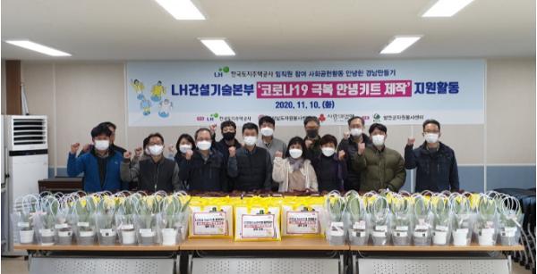 함안군자원봉사센터(센터장 이영학)는 지난 10일 LH한국토지주택공사 건설기술본부 임직원들과 함께 ‘코로나19극복 안녕키트’ 제작 봉사활동을 펼쳤다.