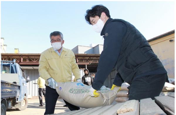 매입 현장을 방문한 김학동 군수는 “여름철 긴 장마와 집중 호우로 인해 병해충 발생이 증가하고 태풍으로 인한 도복, 백수 현상 등 생산량 감소로 어려움이 많았을 텐데 노고에 걸맞은 좋은 결과가 나오길 바란다.”며 농민들을 격려했다.
