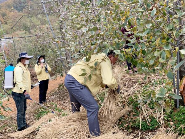 충주시가 볏짚을 활용한 과수화상병 친환경 방제기술을 실천하며 과수화상병의 발병 억제를 위해 힘을 쏟고 있다.