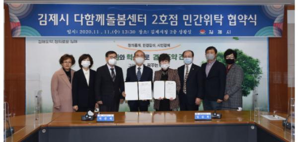 김제시는 지난 11일 2층 상황실에서 박준배 김제시장과 임순희 글로벌다문화 대표등이 참석한 가운데 김제시 다함께돌봄센터 2호점 민간위탁 협약식을 체결 하였다.