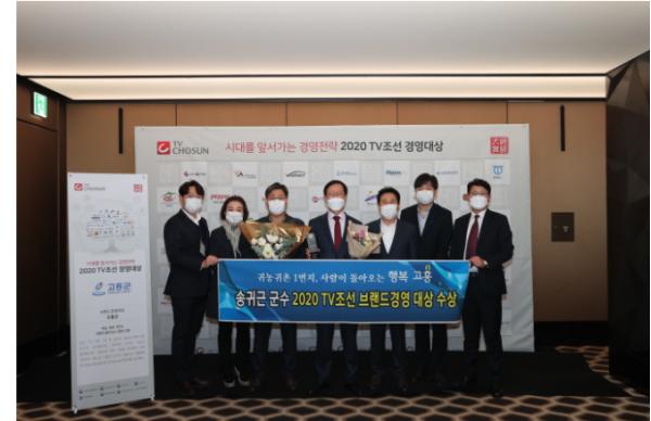 고흥군은 10일, 서울에 위치한 더 플라자호텔에서 TV조선이 주최하고 산업통장자원부 등 8개 부처가 공동 후원한「2020 경영대상」에서 송귀근 군수가 ‘브랜드 경영’ 부문 대상을 수상했다고 밝혔다.