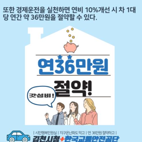 환경부, 한국교통안전공단 자료에 따르면, 경제운전을 실천하면 자동차 배출가스가 감소하여 지구온난화를 막는데 도움이 되며 아울러 연비 10%개선 시 차 1대당 연간 약 36만원을 절약할 수 있다.