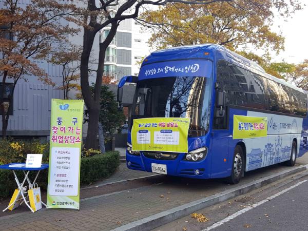 ‘찾아가는 취업상담소’ 일자리 희망버스는 시간ㆍ거리상의 불편, 정보부족 등의 이유로 동구 일자리센터를 방문하지 못하는 관내 주민이 편리하게 일자리정보를 접하고 취업에 성공할 수 있도록 관내 유동인구가 많은 장소로 출장해 맞춤형 취업상담 서비스를 제공한다. 지난해에는 6회에 걸쳐 총 117명의 구직자가 상담을 받고 이 중 26명이 취업의 기쁨을 누렸다.