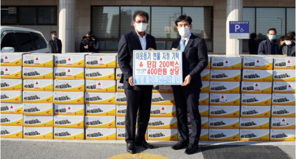 함평엘리체컨트리클럽이 지난 11일 함평군청을 찾아 지역의 어려운 이웃들에게 전해 달라며 400만 원 상당의 단감(10kg) 200박스를 기부했다.