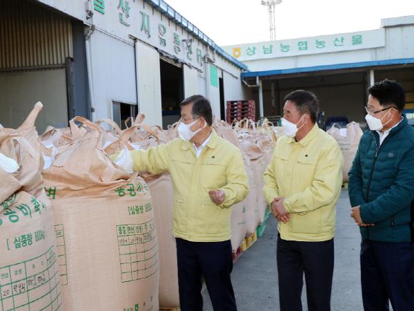 박일호 밀양시장은 12일 2020년산 공공비축미 첫 매입현장인 상남면 농협 저온창고를 찾아 출하 농업인과 농협, 농산물품질관리원 및 수매관계자들을 격려했다.